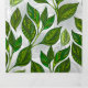 Seamless pattern of green patterned tea leaves and sprouts on a light background. Tea design.