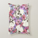 The cushion is small to medium sized. It can be washed. It is well constructed. The material used is pleasant and feels decent quality. It has a very slight plush feel which is good. It is well labelled and its care clearly stated. Theres nothing not to like about it. All in all a good item. The deduction of one star overall is due to long delays in delivery to the UK. It's not clear if this was due to Zazzle or somewhere else in the chain as I did not receive status updates of dispatch or progress. I cannot comment anymore on that other than to say that was our experience but it may not be the same for you. The printing was surprisingly close to what we were expecting. Its an art piece and on material so its hard to assess the precision of printing but it seems close to the original. The soft lines are reproductions of the original. The colour is a fair reflection of the painting. This was printed in the US and it looks like US quality. No issues.