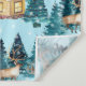 Seamless pattern with winter village in the forest tapestry