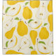 Seamless pear pattern. Different pears whole fruits and pieces with leaves on light yellow background