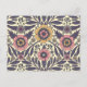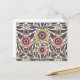 This postcard has flowers and leaves in shades of pink and blue on a cream-coloured background.