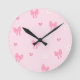 Seamless Pink Bow and Floral Pattern – Cute Girly Round Clock