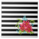 Seamless pink flowers floral black white striped l tile