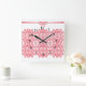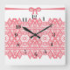 Seamless pink romantic elegant lace lacy bow white square wall clock