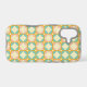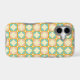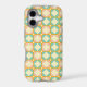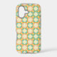 Seamless retro pattern with rounded squares in peach, teal, and cream hues, outlined in orange. Mid-century modern style, conveying a vintage, playful tone.