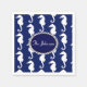 Endless and seamless pattern of white seahorses silhouettes over a navy ocean blue background.