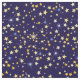 This starry seamless pattern evokes winter holidays' atmosphere such as Christmas and New Year's Eve, as well as night, magic and astrology themed decorations. Yellow and light blue stars with a dark blue background might also refer to the European flag or just the entire galaxy.