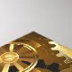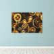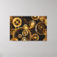 Seamless, metal, brass, gold gears on rusty dark background. Steampunk style.