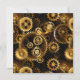 Seamless, metal, brass, gold gears on rusty dark background. Steampunk style.