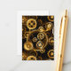 Seamless, metal, brass, gold gears on rusty dark background. Steampunk style.