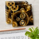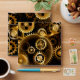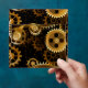 Seamless, metal, brass, gold gears on rusty dark background. Steampunk style.