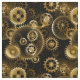 Seamless, metal, brass, gold gears on rusty dark background. Steampunk style.