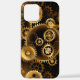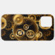 Seamless, metal, brass, gold gears on rusty dark background. Steampunk style.