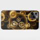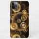 Seamless, metal, brass, gold gears on rusty dark background. Steampunk style.