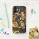 Seamless, metal, brass, gold gears on rusty dark background. Steampunk style.