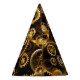 Seamless, metal, brass, gold gears on rusty dark background. Steampunk style.