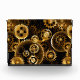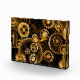 Seamless, metal, brass, gold gears on rusty dark background. Steampunk style.