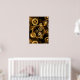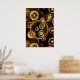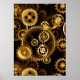 Seamless, metal, brass, gold gears on rusty dark background. Steampunk style.
