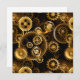 Seamless, metal, brass, gold gears on rusty dark background. Steampunk style.