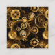 Seamless, metal, brass, gold gears on rusty dark background. Steampunk style.