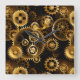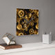 Seamless, metal, brass, gold gears on rusty dark background. Steampunk style.