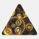 Seamless, metal, brass, gold gears on rusty dark background. Steampunk style.