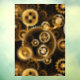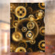Seamless, metal, brass, gold gears on rusty dark background. Steampunk style.