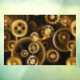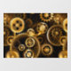 Seamless, metal, brass, gold gears on rusty dark background. Steampunk style.