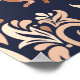 Seamless symmetrical pattern in the Damask style. Jumping hares,an ornament of plants in beige shades on a dark blue background.
