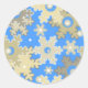 Seamless winter light blue beige pattern snowflake classic round sticker