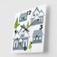 Seamless winter Merry Christmas landscape grey hou Square Wall Clock