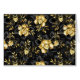 Seamless pattern with black and gold blooming orchids, richly decorated with black eucalyptus twigs and delicate jewellery pistachio twigs on black background. Golden jewellery Orchid.