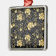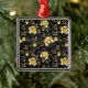 Seamless pattern with black and gold blooming orchids, richly decorated with black eucalyptus twigs and delicate jewellery pistachio twigs on black background. Golden jewellery Orchid.
