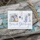 Seas and Greetings Seashell Ornament on Coastal Wood Holiday Photo Christmas Post Cards featuring ocean navy blue and sandy tan shell ornaments hanging from sailing jute rope on coastal shiplap wood with elegant typography. Add two of your photos and a personal message for a fun nautical holiday card that is easy to edit and send! Please contact us at cedarandstring@gmail.com if you need assistance with the design or matching products.