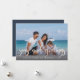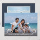 Modern coastal style holiday photo card adds beachy flair to your Holiday/ Christmas greetings! Perfect for families who live in coastal, tropical, warm weather or island locales. Personalise with 2 photos, family name and a year on the front, and message on the back.