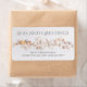 Seas And Greetings Simple Modern Beach Seashell Holiday Shipping Labels features the text "Seas and Greetings" in modern grey script accented with seashells and twine. Personalised with your family name and return address by editing the text in the text boxes provided. Designed by ©Evco Holidays www.zazzle.com/store/evcoholidays