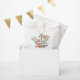 Festive and beachy Christmas party favour bags feature a watercolor anchor illustration adorned with poinsettia flowers, red starfish and colourful holiday greenery, with "seas and greetings" beneath in navy lettering. Makes a great holiday party favour bag for beachy or yacht club celebrations.