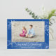 Use your favourite beach vacation photos to create a beautiful, elegant Christmas card. "Seas and Greetings" is on the front with your customised message at the bottom. A deep blue background with white starfish and seashells compliments your photo. The back also features the blue background along with plenty of room for an additional photo and a message to your friends and family.