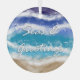 Blue and teal waves on a sandy beach pretty beach house inspired Tropical Christmas Ornament.