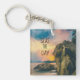 Custom keychain with a beach background and inspirational quote.
