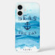Personalise this nautical blue and white case with your monogram or name for an understated person touch. Design features "seas the day" in navy blue lettering atop a blue and white ocean wave watercolor background.