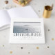 Simple, modern and elegant customisable Celebration of Life guest book with a simple white frame + In Loving Memory (drop shadow - not customisable) and seascape. You can easily change image and name + dates (colour, font, size and position) and add text in back by clicking the customise button. Matching Celebration of Life invitation.
