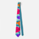 This necktie has a seascape with teal seaweed and orange, pink, and purple fish.