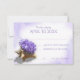 Watercolor inspired purple beach wedding response card to compliment invitation with delicate purple hydrangea flowers filling a tropical conch shell. Shades of purple watercolor backdrop and frame to compliment the flowers.
