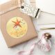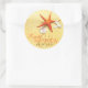 Seashell, starfish, sand dollar, and coral on sandy beach label design for a beach destination wedding.