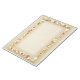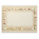 A border of sea shells on beach sand. Inside the border, the beach sand is faded, to allow for easier writing.