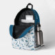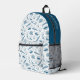 Seashell backpack. Blue shells on white background. Customise with your own name or choice of text. Matching items available. Original art from artists own illustrations. Please use the message me button below for help with further customisation and special requests. © Zoe Chapman Design