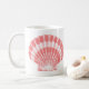 Digitally enhanced, mixed media vintage illustration of a scallop shell - soft coral pink with white