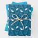 A set of three pretty wrapping paper sheet in shades of blue with the line art pattern of a seashell . Perfect for any summer celebrations .