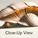 The warm, golden tones of the underside of the "mushroom" are beautifully contrasted with the soft, pearlescent white of the shells, all set against a clean, minimalist background.